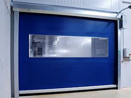 Ворота серии R оснащены высокоскоростным приводом с микропроцессорным управлением. Скорость открытия/закрытия ворот – до 2,6 м/с. Также в воротах есть пружинно натяжной механизм, который позволяет разгружать работу электродвигателя и обеспечивает постоянное натяжение полотна при сильных ветровых нагрузках (класс ветровой нагрузки: 0-3).